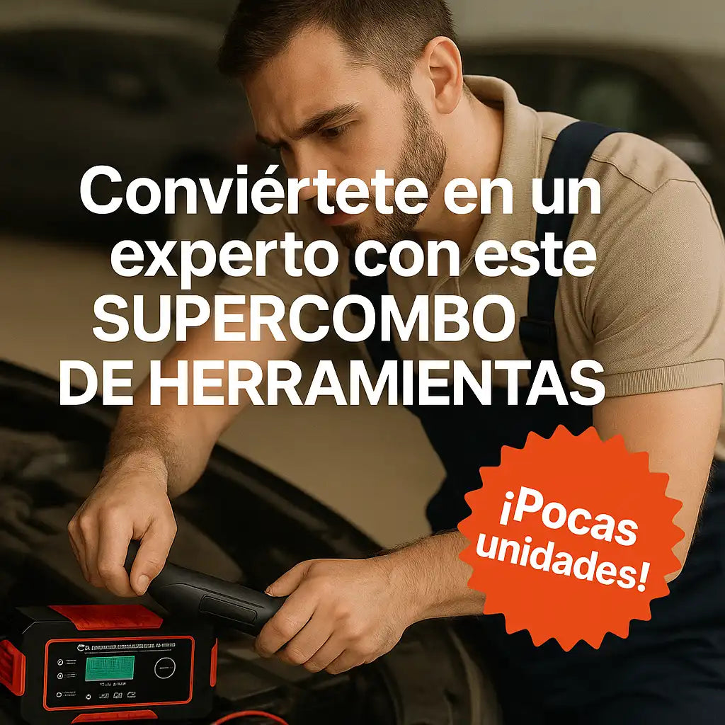 🛠️ Cambias a modo pistola y solucionas todo en segundos, incluso en esquinas difíciles. 💡 Conectas tu cargador inteligente y listo: tu batería revive sin salir de casa.