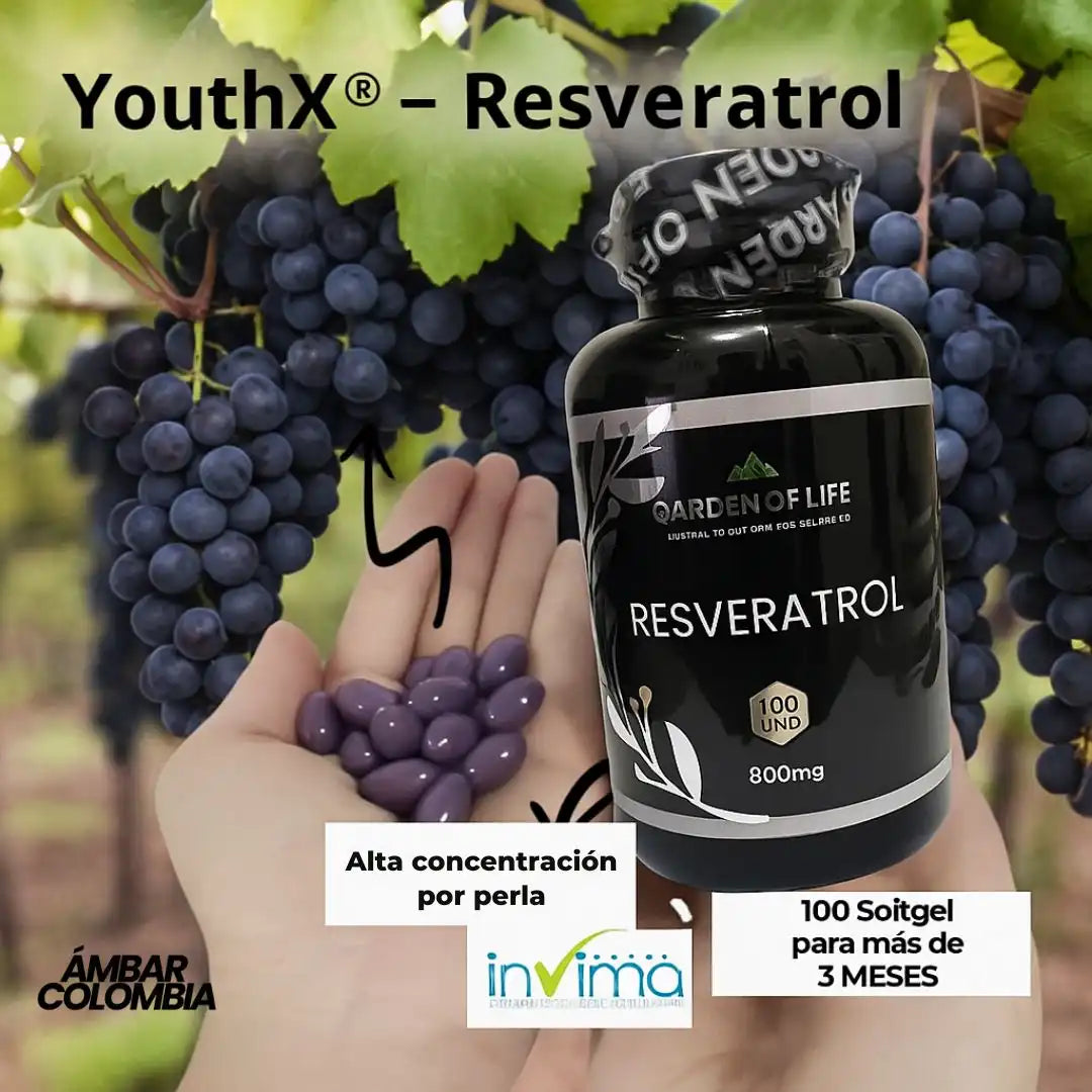 YouthX® – Resveratrol Antiedad con Registro INVIMA Luce más joven, protege tu corazón y fortalece tu cuerpo desde adentro.